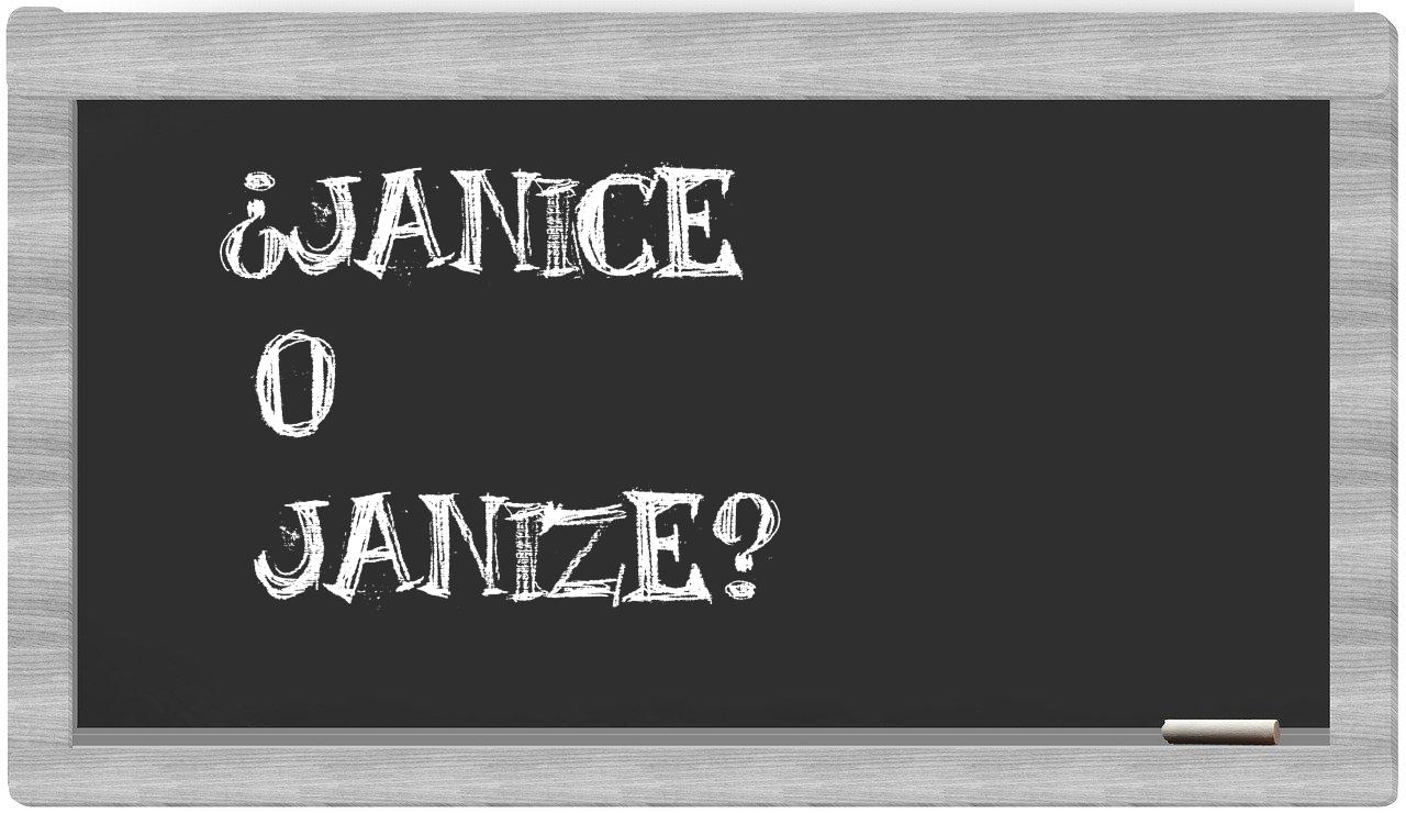 Cuando se trata de la elección entre janice y janize, no hay lugar para la confusión, puesto que únicamente janice se encuentra registrada de manera adecuada. Por otro lado, janize carece de presencia en el Diccionario de la Real Academia Española.