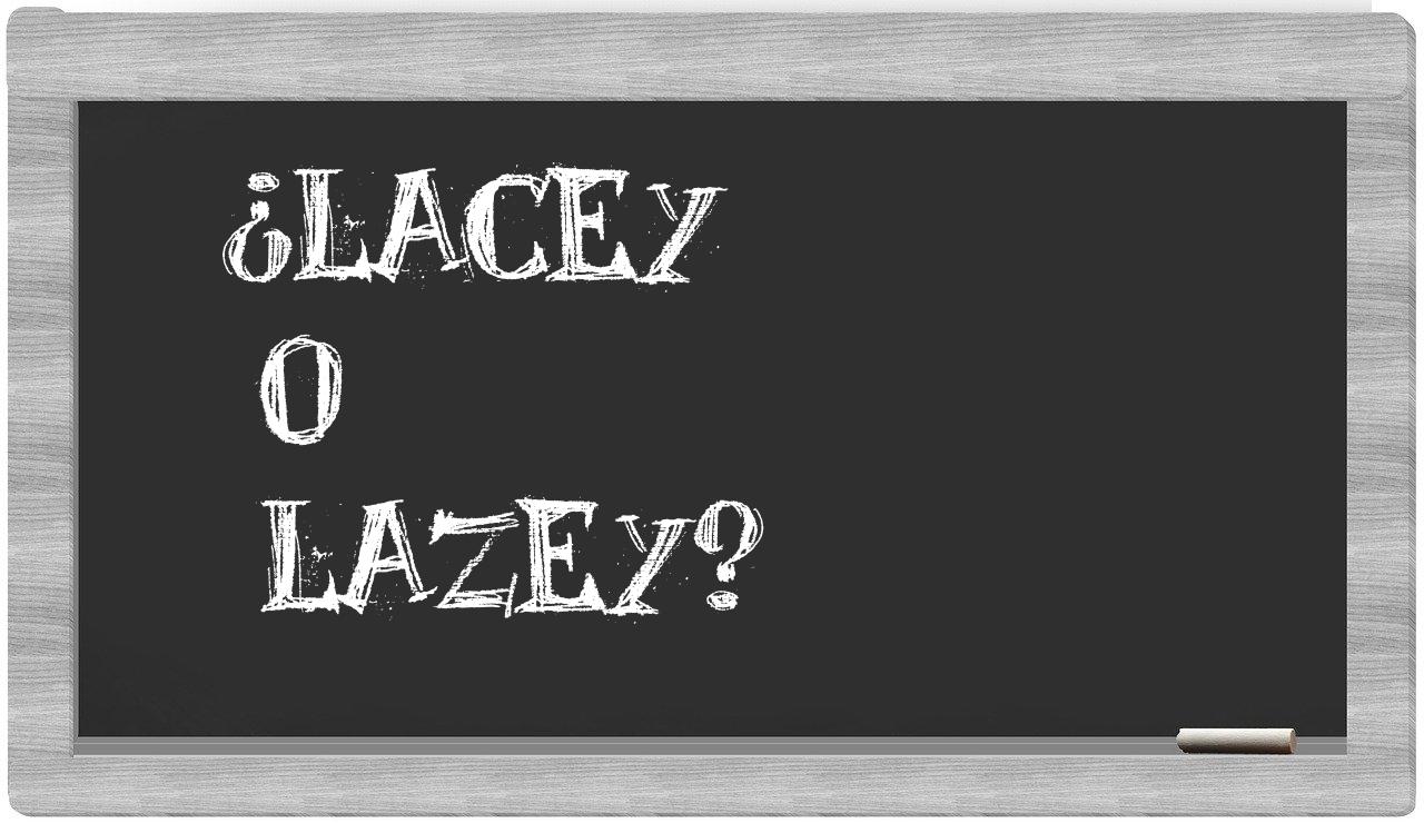 En la situación específica que involucra los términos lacey y lazey, nunca deberías contemplar una incertidumbre, puesto que únicamente lacey se encuentra correctamente redactado. lazey carece de presencia en el léxico del Diccionario de la Real Academia de la Lengua.