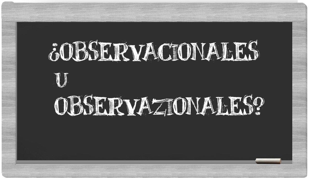 Cuando se presenta la disyuntiva entre el término observacionales y observazionales, no existe espacio para la incertidumbre, puesto que únicamente observacionales es el que se encuentra debidamente aceptado en el léxico de la Real Academia Española, mientras que observazionales carece de reconocimiento en su repertorio.