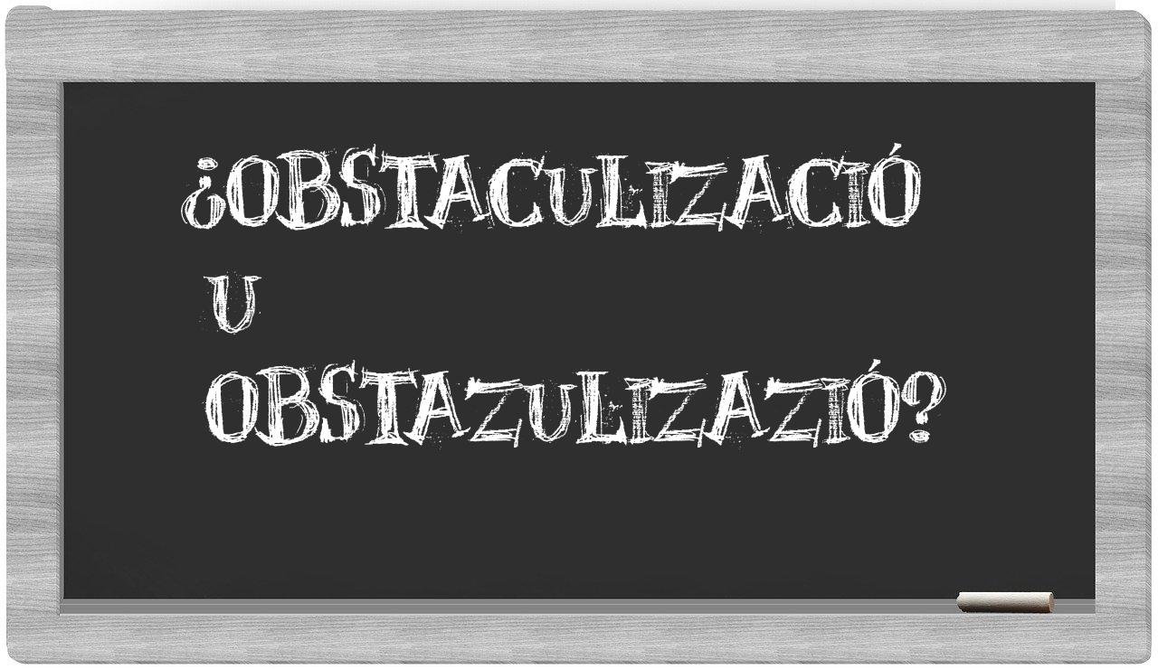 En la circunstancia específica de las voces obstaculizació y obstazulizazió, nunca deberías titubear, puesto que únicamente obstaculizació se encuentra debidamente redactada. Por otro lado, obstazulizazió no figura en el repertorio del Diccionario de la Real Academia de la Lengua.