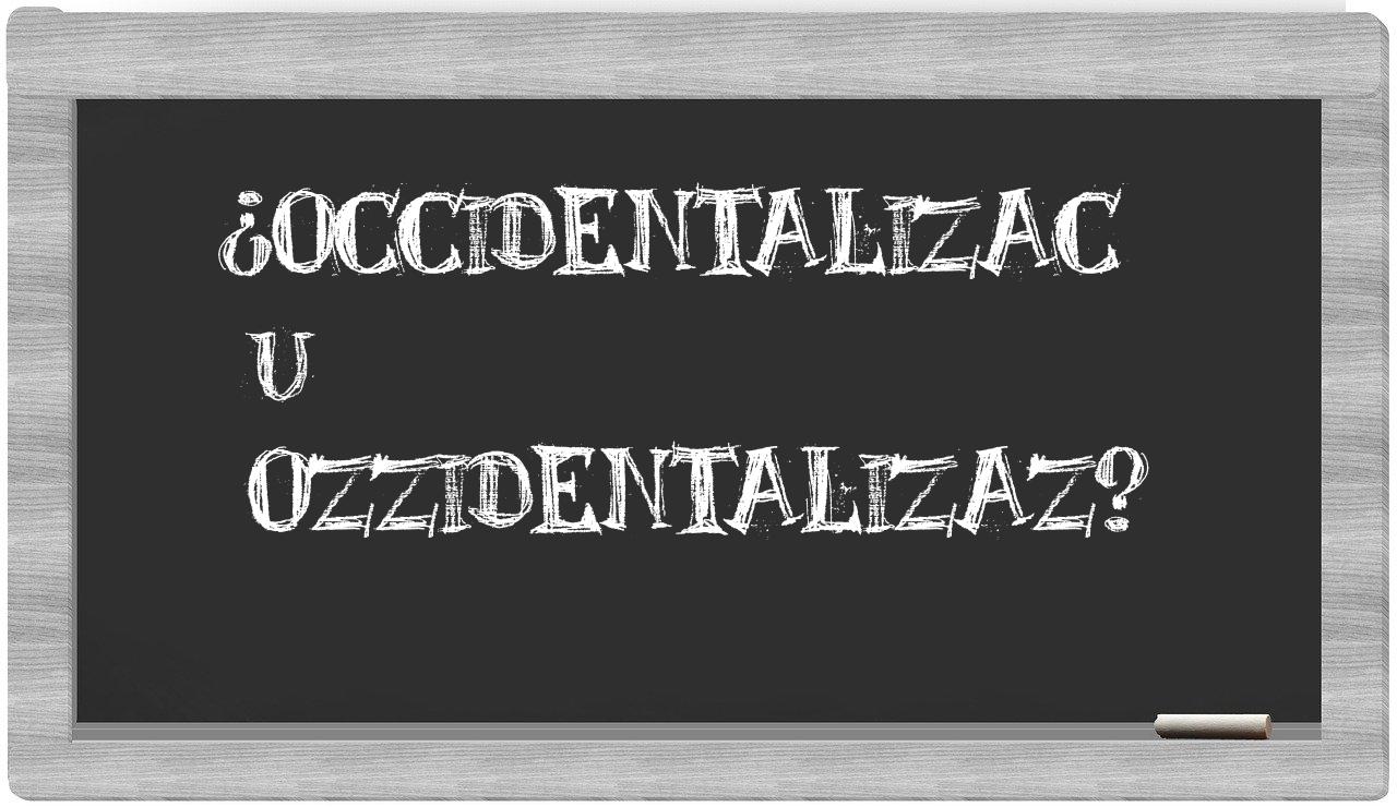 Cuando se trata de la elección entre occidentalizac y ozzidentalizaz, no deberías titubear, puesto que únicamente occidentalizac es la opción correcta según las normas ortográficas. Por otro lado, ozzidentalizaz no figura en el Glosario de la Real Academia Española.