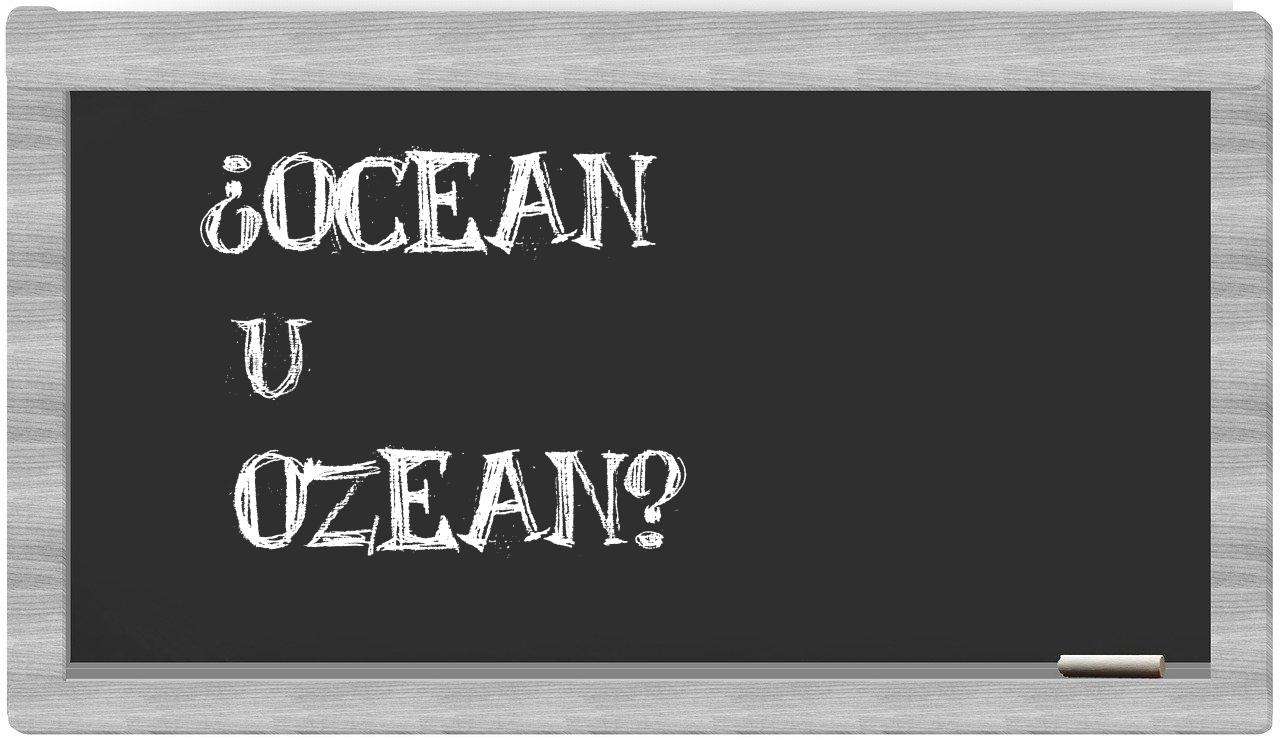 En la situación específica entre los términos ocean y ozean, no deberías cuestionar tu elección, puesto que únicamente ocean se encuentra registrado de manera adecuada. Por otro lado, ozean no figura en el Diccionario de la Real Academia Española.