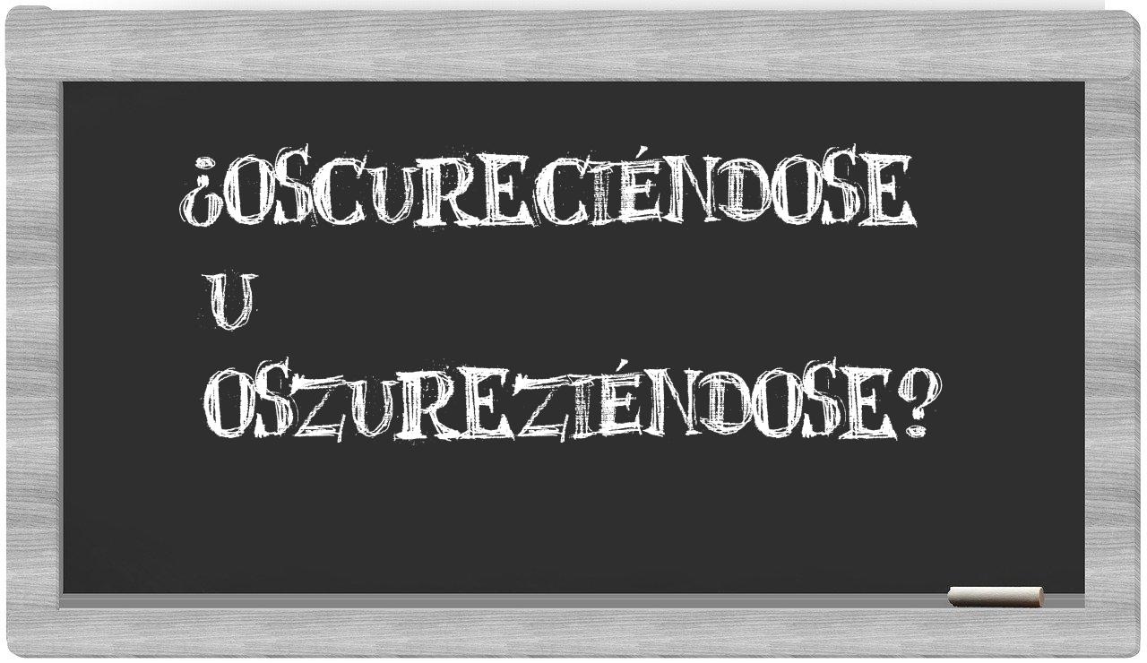 Cuando se trata de la distinción entre oscureciéndose y oszureziéndose, la certeza debe prevalecer, puesto que únicamente oscureciéndose se encuentra registrada de manera adecuada, mientras que oszureziéndose no figura en el Diccionario de la Real Academia Española.