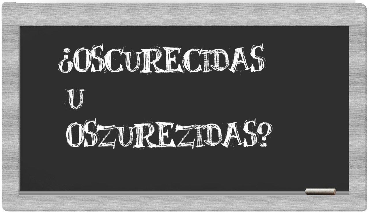 Cuando se trata de las expresiones oscurecidas y oszurezidas, no hay razón para titubear, puesto que únicamente oscurecidas está registrada de manera adecuada, mientras que oszurezidas carece de reconocimiento en el Diccionario de la Real Academia Española.