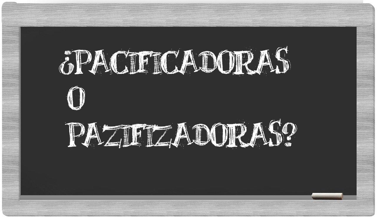 En la situación específica donde se comparan los términos pacificadoras y pazifizadoras, nunca deberías tener incertidumbres, puesto que únicamente pacificadoras se escribe de manera adecuada, mientras que pazifizadoras no se encuentra registrado en el Diccionario de la Real Academia Española.