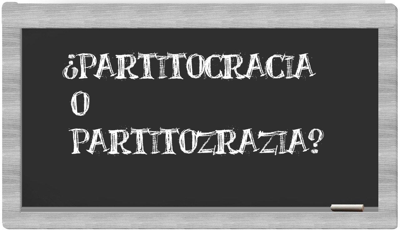 Cuando se presenta la elección entre partitocracia y partitozrazia, no cabe lugar a la incertidumbre, puesto que únicamente partitocracia es la que se encuentra correctamente escrita; en cambio, partitozrazia no tiene cabida en el Diccionario de la Real Academia Española.