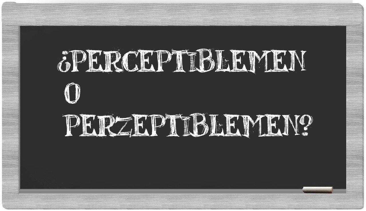 Cuando se trata de discernir entre perceptiblemen y perzeptiblemen, no debes vacilar, pues solo perceptiblemen se encuentra debidamente validada, mientras que perzeptiblemen no figura en el Diccionario de la Real Academia Española.