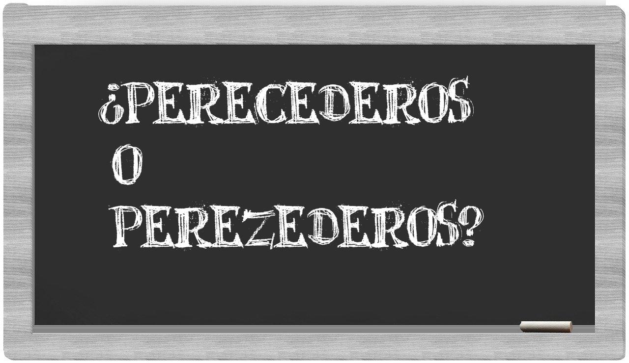 Cuando te encuentres ante la elección entre perecederos y perezederos, no hay lugar para la vacilación, pues solo perecederos es la opción que se encuentra adecuadamente registrada, mientras que perezederos no tiene cabida en el Diccionario de la Real Academia Española.