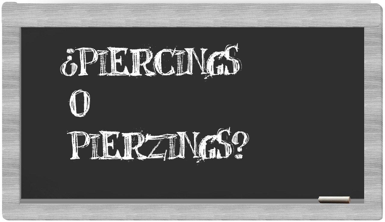 En la situación específica que involucra los términos piercings y pierzings, la certeza no debe abandonarte, puesto que únicamente piercings se encuentra debidamente registrada. Por otro lado, pierzings no figura en el compendio de la Real Academia Española.