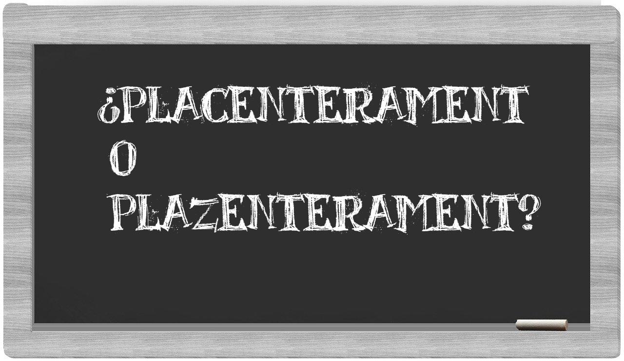 En la situación específica que involucra los términos placenterament y plazenterament, no hay lugar para la indecisión, puesto que únicamente placenterament se encuentra correctamente redactado. Por otro lado, plazenterament no se encuentra registrado en el Diccionario de la Real Academia Española.