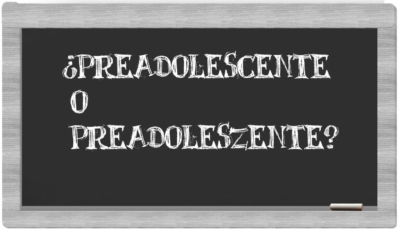 En la situación particular que involucra los términos preadolescente y preadoleszente, la elección es clara y no deja espacio para la incertidumbre, puesto que únicamente preadolescente es la forma adecuada; por otro lado, preadoleszente no se encuentra registrada en el Diccionario de la Real Academia Española.
