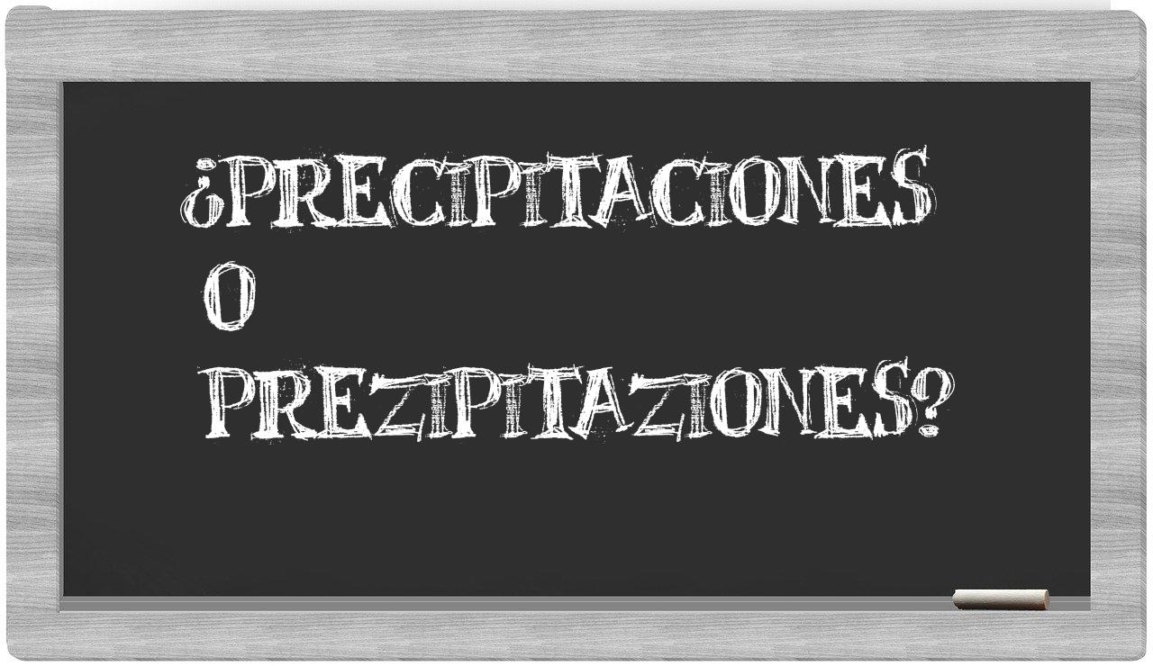 Cuando se trata de elegir entre precipitaciones y prezipitaziones, la decisión debería ser clara y sin titubeos, puesto que únicamente precipitaciones figura como la opción adecuada; prezipitaziones, en cambio, no está registrada en el Diccionario de la Real Academia Española.