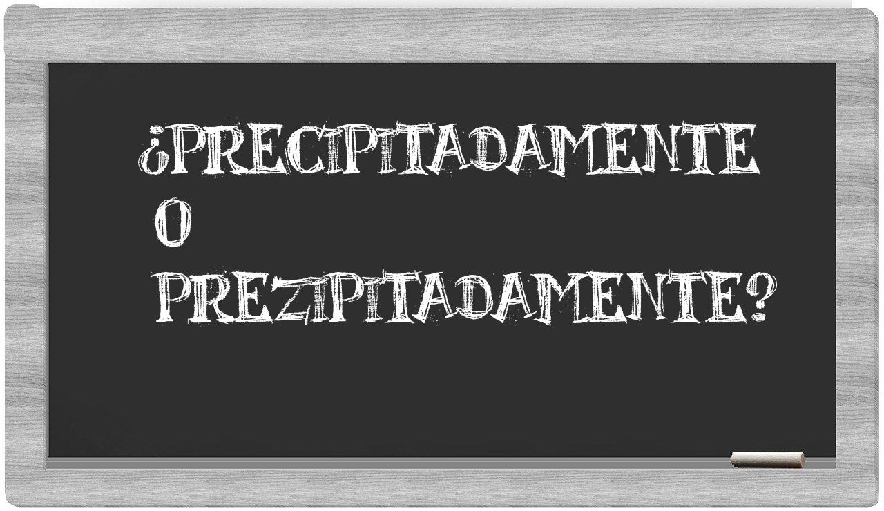 Cuando se presenta la disyuntiva entre precipitadamente y prezipitadamente, la elección es clara y sin titubeos, porque únicamente precipitadamente es la opción que se encuentra adecuadamente aceptada; prezipitadamente, en cambio, no figura en el prestigioso Diccionario de la Real Academia Española.