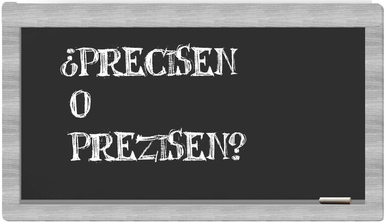 Cuando te enfrentes a las palabras precisen y prezisen, no vaciles en tu elección, puesto que únicamente precisen es la que se encuentra debidamente registrada; en cambio, prezisen no forma parte del léxico de la Real Academia Española.