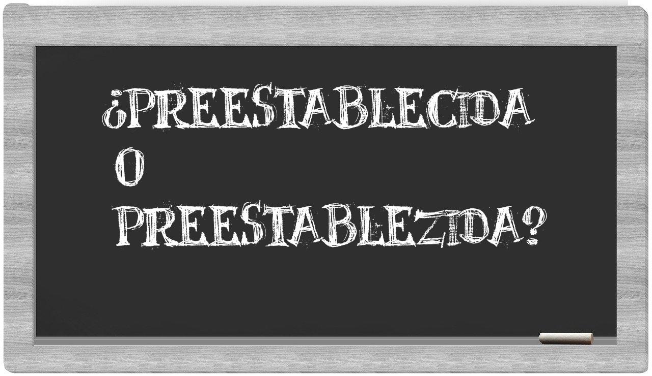 En la situación particular que involucra los términos preestablecida y preestablezida, no deberías estar indeciso, dado que únicamente preestablecida se encuentra correctamente formulada. El término preestablezida no figura en el Diccionario de la Real Academia Española.