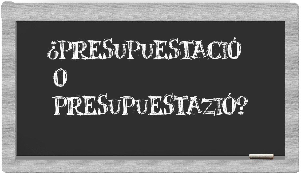 Cuando estés ante la elección entre presupuestació y presupuestazió, no permitas que la incertidumbre te asalte, pues es indiscutible que solo presupuestació es la forma adecuada; por el contrario, presupuestazió no se encuentra registrado en el Diccionario de la Real Academia Española.