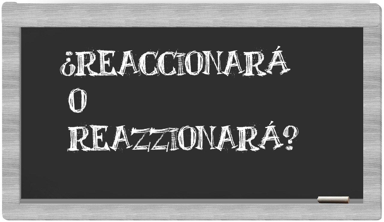 Cuando se trata de las expresiones reaccionará y reazzionará, nunca deberías titubear, pues únicamente reaccionará se encuentra correctamente documentada; cabe mencionar que reazzionará no figura en el Diccionario de la Real Academia Española.