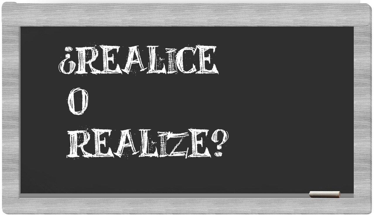 Cuando se presenta la elección entre realice y realize, no hay motivo para la incertidumbre, porque solo realice es la opción que se encuentra debidamente registrada en el Diccionario de la Real Academia Española, mientras que realize carece de reconocimiento oficial.
