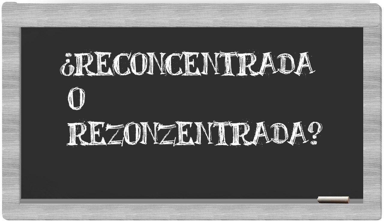 Cuando se presenta la disyuntiva entre reconcentrada y rezonzentrada, es esencial que no vaciles, puesto que solo reconcentrada es la forma adecuada y reconocida, mientras que rezonzentrada carece de legitimidad en el Diccionario de la Real Academia Española.