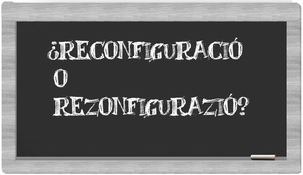 En la situación particular que involucra los términos reconfiguració y rezonfigurazió, es esencial que no titubees, puesto que únicamente reconfiguració se encuentra adecuadamente redactada. Por otro lado, rezonfigurazió no figura en el Diccionario de la Real Academia Española.