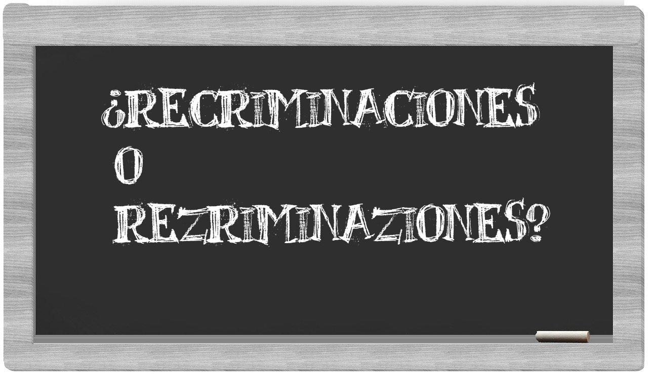 Cuando se presenta la elección entre recriminaciones y rezriminaziones, es crucial que no vaciles, puesto que únicamente recriminaciones representa la forma correcta. Por otro lado, rezriminaziones no se encuentra registrada en el Diccionario de la Real Academia Española.