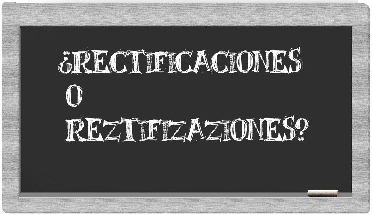 Cuando se presenta la elección entre rectificaciones y reztifizaziones, no vaciles ni un instante, pues únicamente rectificaciones es la forma adecuada; de hecho, reztifizaziones no figura en el repertorio de términos de la Real Academia Española.