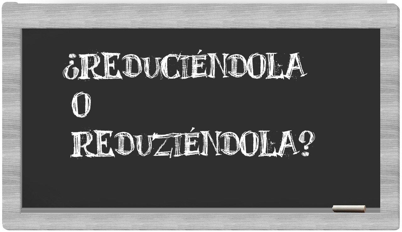 Cuando se trata de discernir entre reduciéndola y reduziéndola, no debes vacilar, pues solo reduciéndola se encuentra debidamente validada, mientras que reduziéndola no figura en el Diccionario de la Real Academia Española.