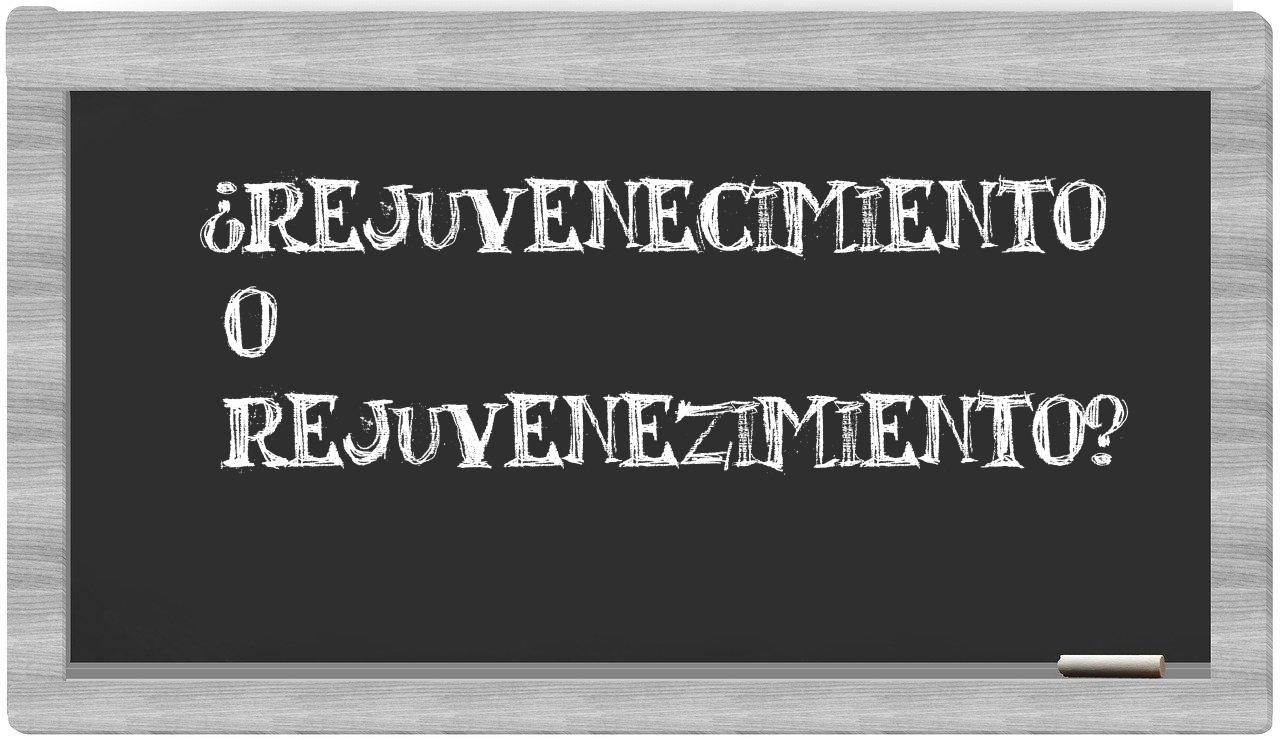 Cuando se presenta la comparación entre rejuvenecimiento y rejuvenezimiento, es fundamental estar seguros, porque únicamente rejuvenecimiento se halla correctamente escrita. Por otro lado, rejuvenezimiento no figura en el Diccionario de la Real Academia Española.
