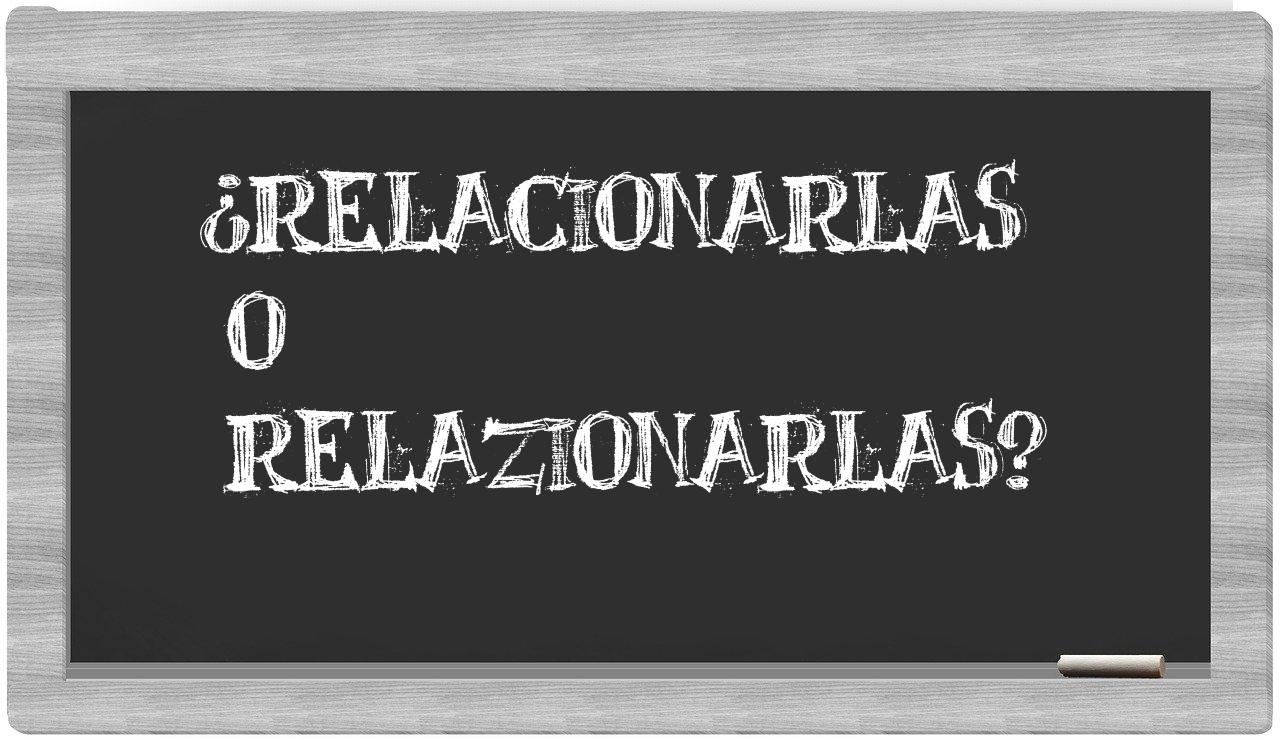 Cuando se plantea la disyuntiva entre relacionarlas y relazionarlas, no hay lugar para la incertidumbre, puesto que únicamente relacionarlas se encuentra debidamente registrada en el Diccionario de la Real Academia Española, mientras que relazionarlas carece de tal reconocimiento.