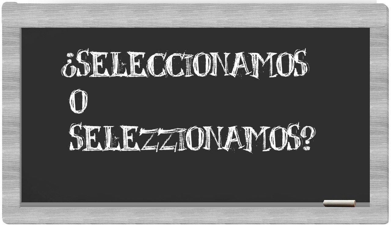 En la situación específica de las palabras seleccionamos y selezzionamos, no deberías titubear, puesto que únicamente seleccionamos se encuentra correctamente redactada. selezzionamos, por otro lado, carece de presencia en el Diccionario de la Real Academia Española.