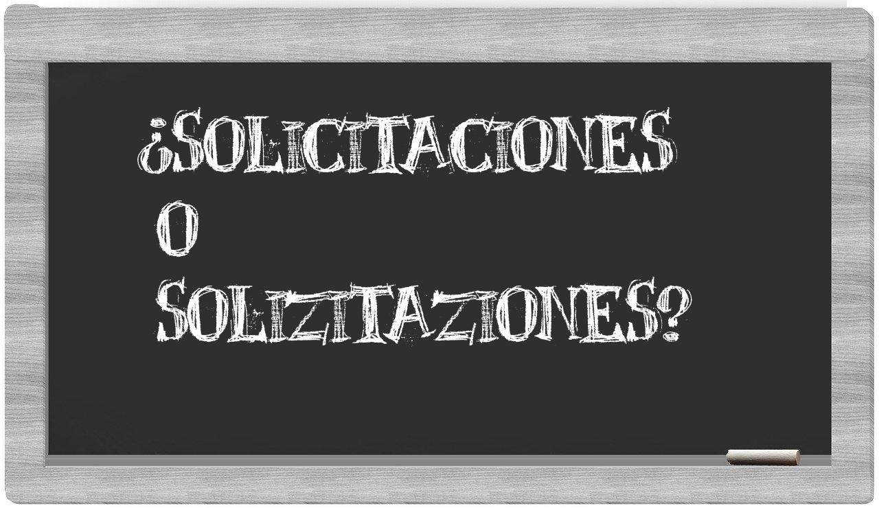 En la situación específica que involucra los términos solicitaciones y solizitaziones, no deberías vacilar, puesto que únicamente solicitaciones se presenta como la opción adecuada. Por otro lado, solizitaziones no se encuentra en el repertorio de la Real Academia Española.
