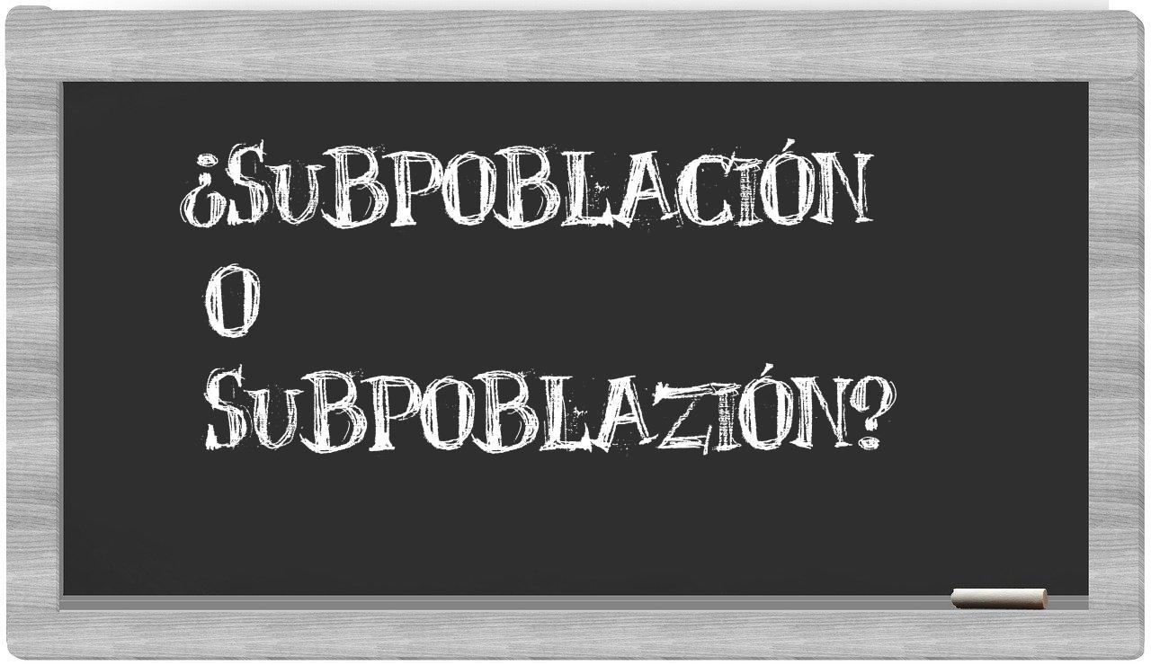 La mezcla entre subpoblación y subpoblazión suele originarse en su parecido en la forma de pronunciación. En la gran mayoría de los acentos del español, estas dos palabras se efectúan con sonidos bastante parecidos, lo que puede inducir a la confusión respecto a su escritura. No obstante, la forma correcta de cada una está determinada por sus raíces etimológicas y por las normas particulares que rigen la ortografía en español.