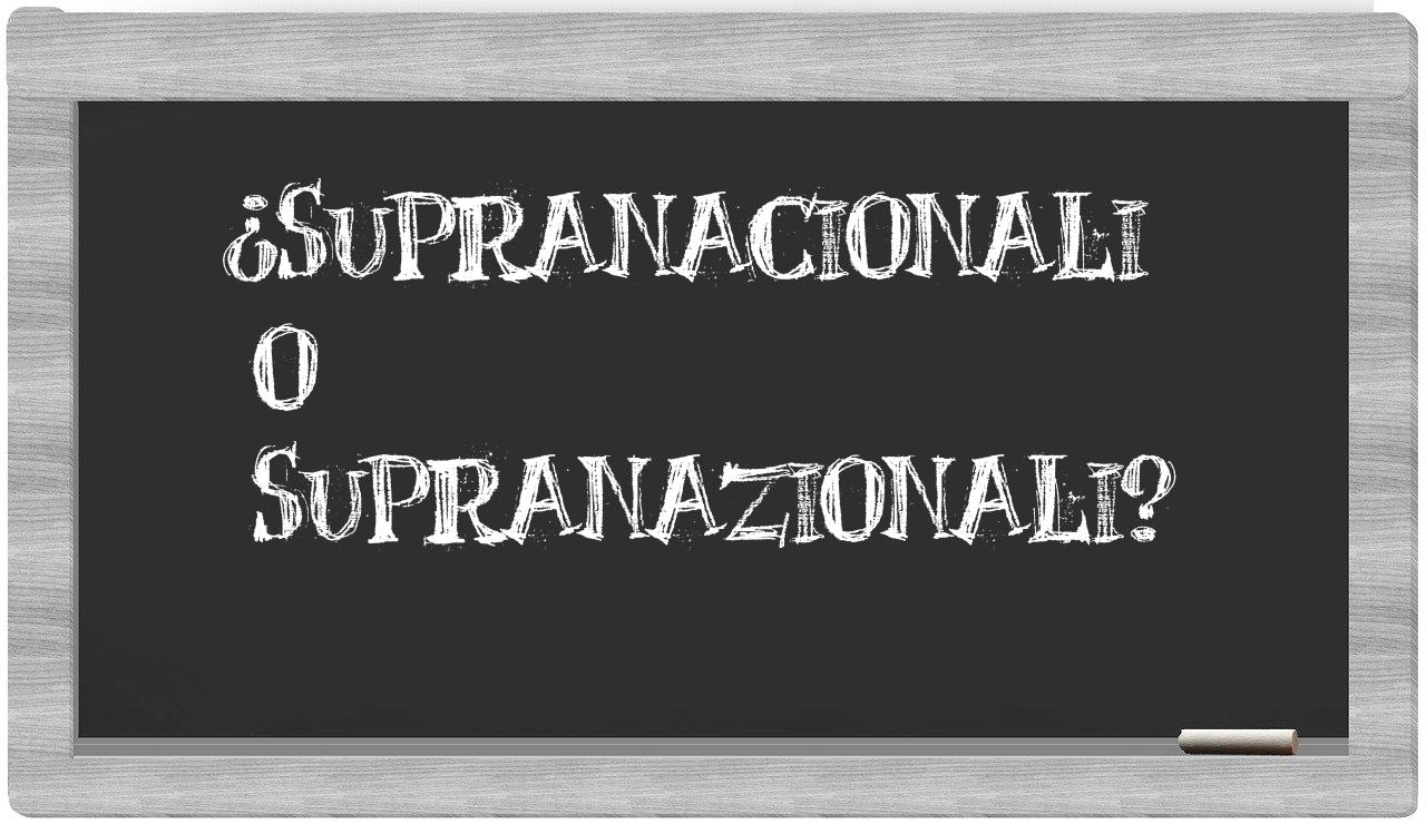 En la situación particular que involucra los términos supranacionali y supranazionali, nunca deberías vacilar, dado que únicamente supranacionali se encuentra correctamente redactada. Por otro lado, supranazionali no se registra en el Diccionario de la Real Academia Española.