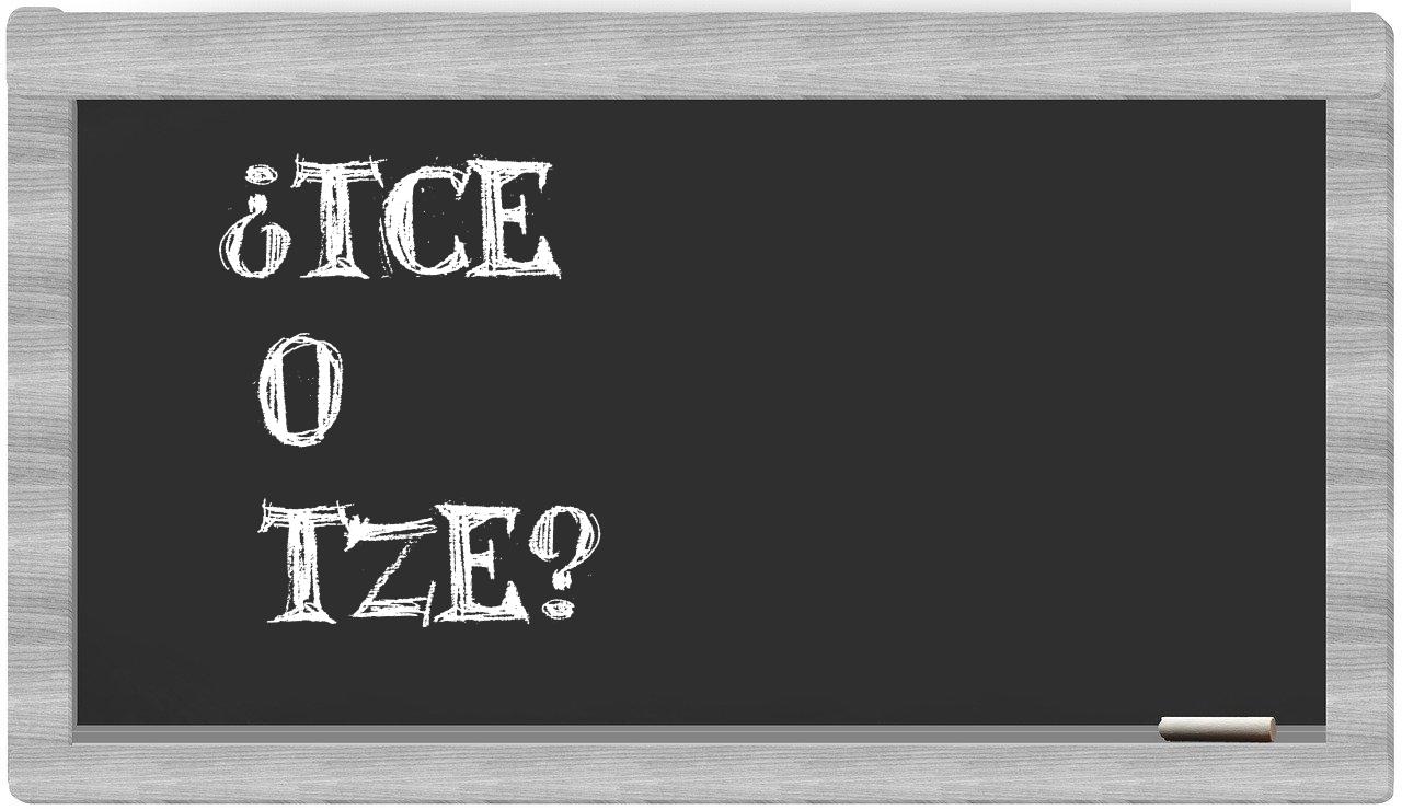 Cuando se trata de las expresiones tce y tze, nunca deberías titubear, pues únicamente tce se encuentra correctamente documentada; cabe mencionar que tze no figura en el Diccionario de la Real Academia Española.