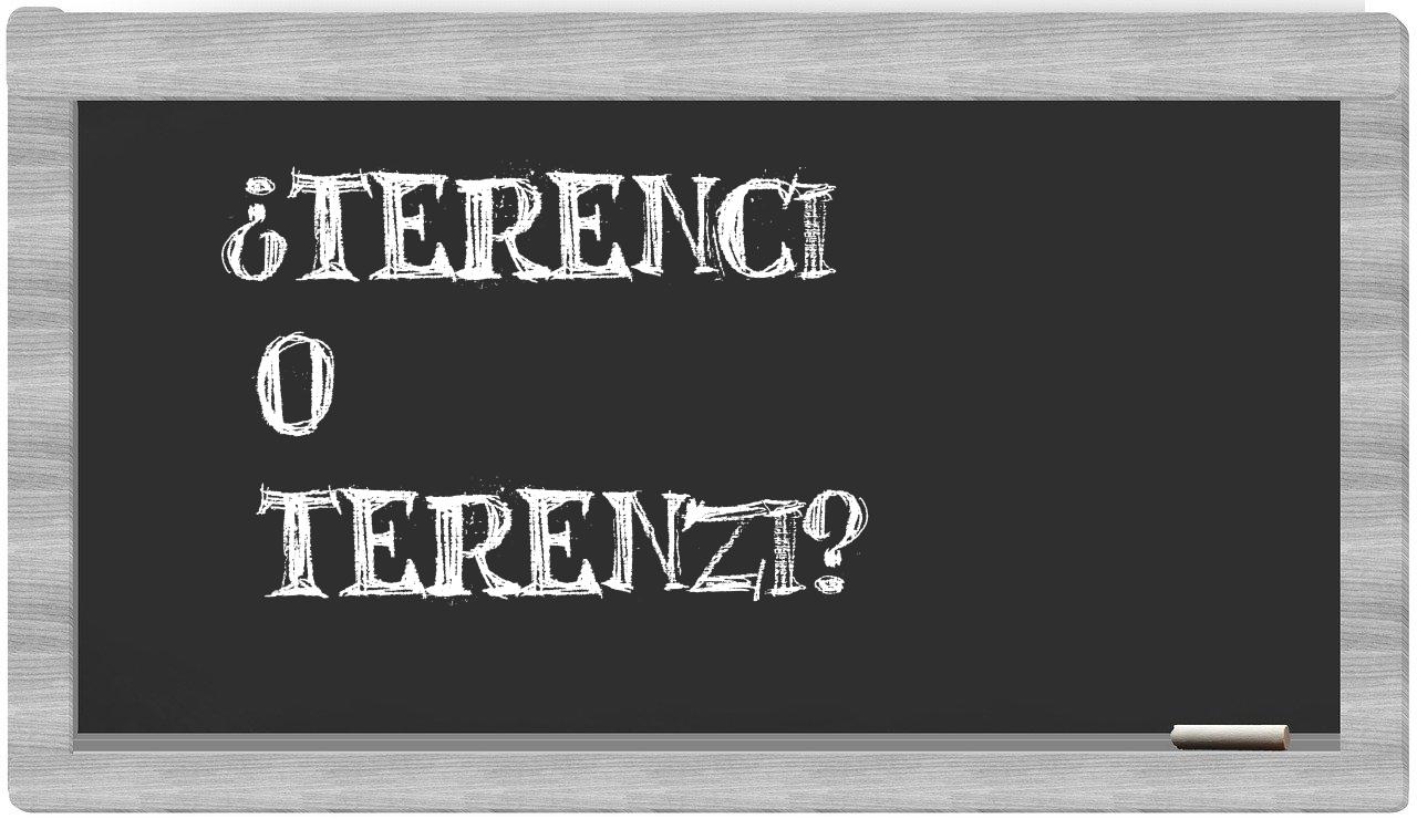 Cuando te enfrentes a las palabras terenci y terenzi, nunca vaciles, pues únicamente terenci es la opción que se encuentra debidamente registrada. La palabra terenzi no cuenta con respaldo en el Diccionario de la Real Academia Española.