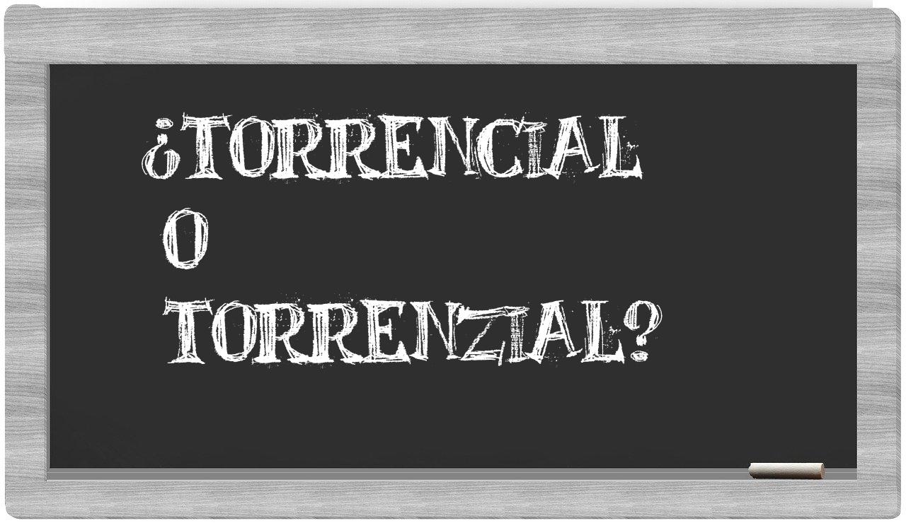 Cuando se trata de elegir entre torrencial y torrenzial, no hay motivo para la incertidumbre, puesto que únicamente torrencial se encuentra debidamente registrada en el Diccionario de la Real Academia Española, mientras que torrenzial carece de reconocimiento oficial.