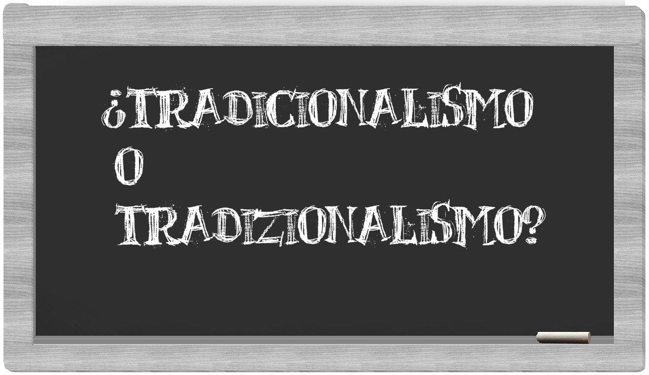 Cuando te enfrentes a la elección entre tradicionalismo y tradizionalismo, ten la certeza de que tradicionalismo es la única opción que se encuentra debidamente correcta; en cambio, tradizionalismo no figura en el prestigioso Diccionario de la Real Academia Española.