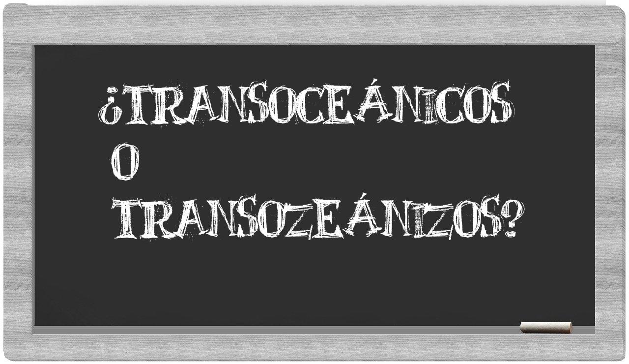 Cuando se presenta la disyuntiva entre transoceánicos y transozeánizos, no deberías titubear un instante, porque únicamente transoceánicos se encuentra debidamente registrada. Por otro lado, transozeánizos no figura en el Diccionario de la Real Academia Española.