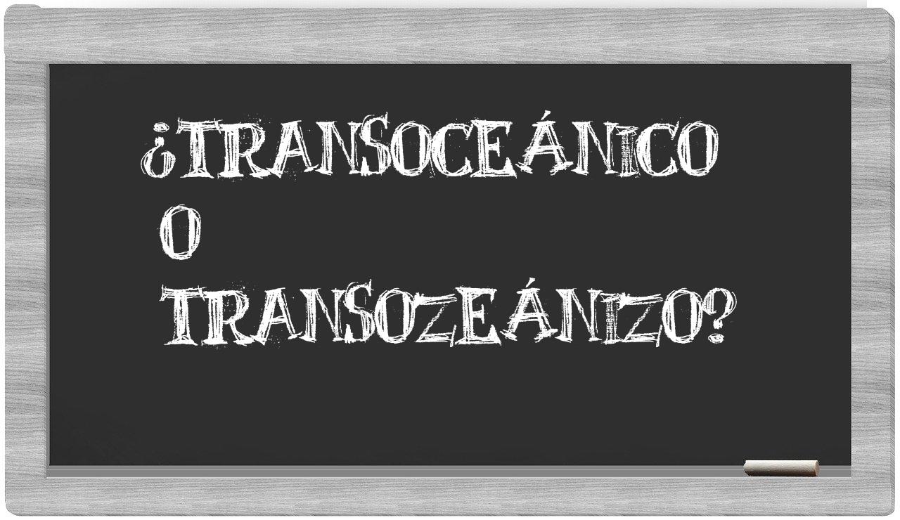 En la situación particular que involucra los términos transoceánico y transozeánizo, no debería haber lugar para la incertidumbre, puesto que única y exclusivamente transoceánico se encuentra correctamente redactada. En cambio, transozeánizo no se halla registrada en el Diccionario de la Real Academia Española.