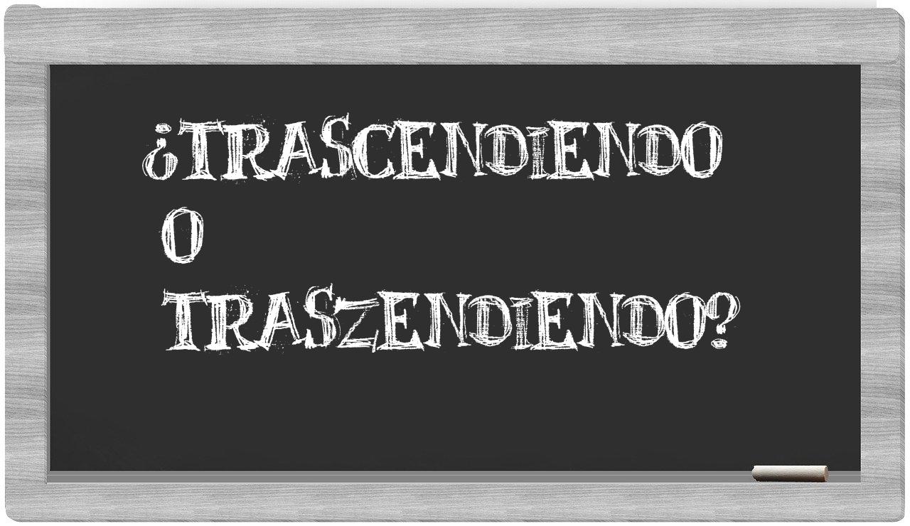 En la particularidad de las relaciones entre trascendiendo y traszendiendo, la elección no debería ser motivo de incertidumbre, pues únicamente trascendiendo se encuentra registrada de manera correcta. Por otro lado, traszendiendo no figura en el Diccionario de la Real Academia Española.