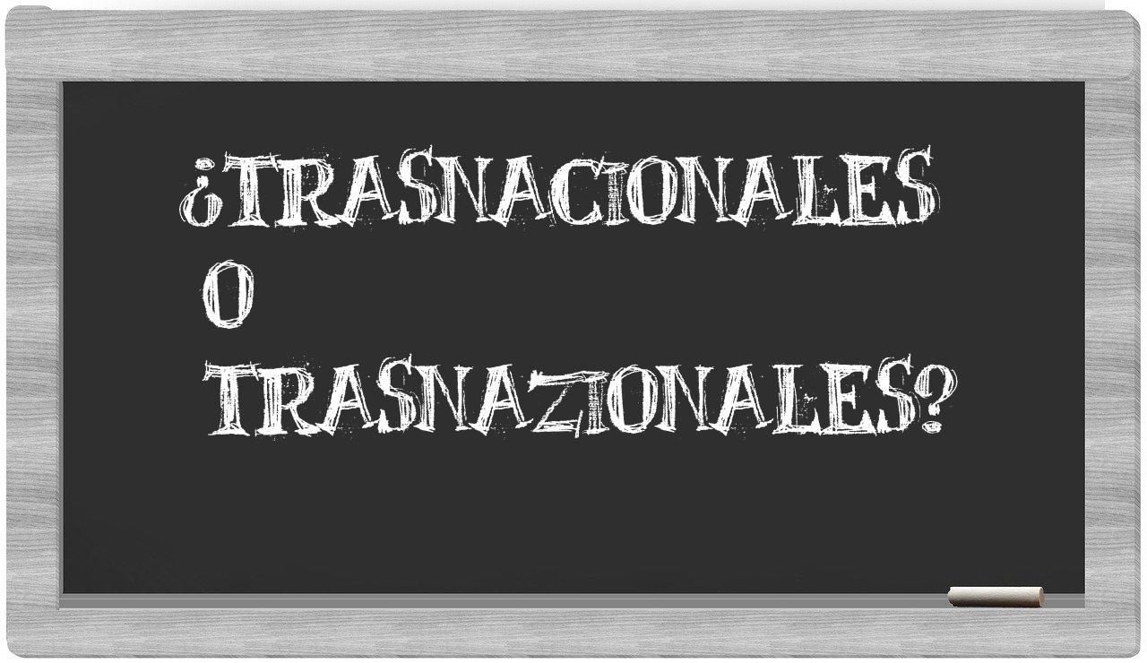 Cuando te enfrentes a la elección entre trasnacionales y trasnazionales, te animo a que no vaciles, puesto que únicamente trasnacionales es la que se encuentra correctamente registrada. En cambio, trasnazionales no figura en el Diccionario de la Real Academia Española.