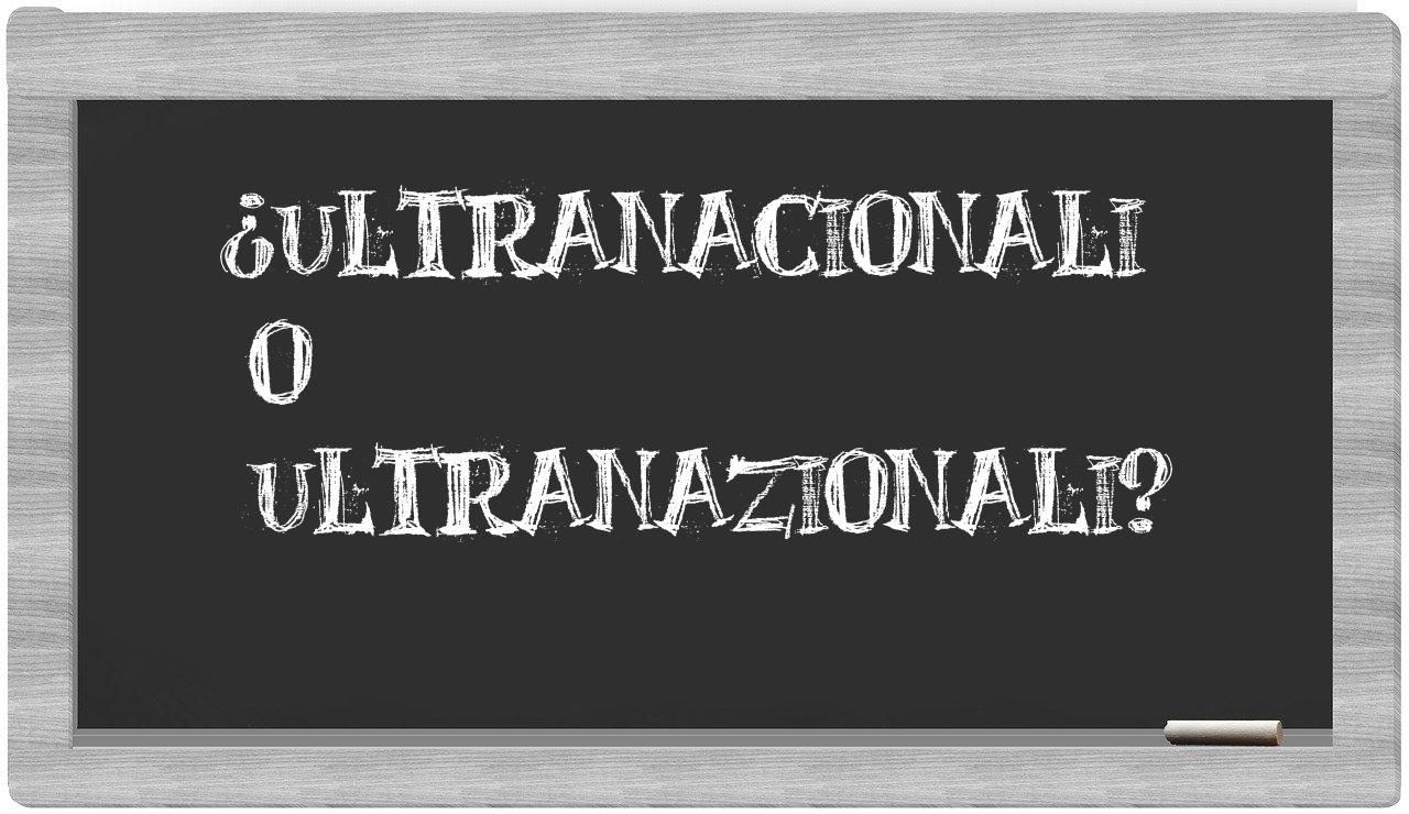 Cuando se trata de las palabras ultranacionali y ultranazionali, no hay motivo para titubear, puesto que únicamente ultranacionali se encuentra debidamente reflejada en el Diccionario de la Real Academia Española, mientras que ultranazionali carece de reconocimiento oficial.