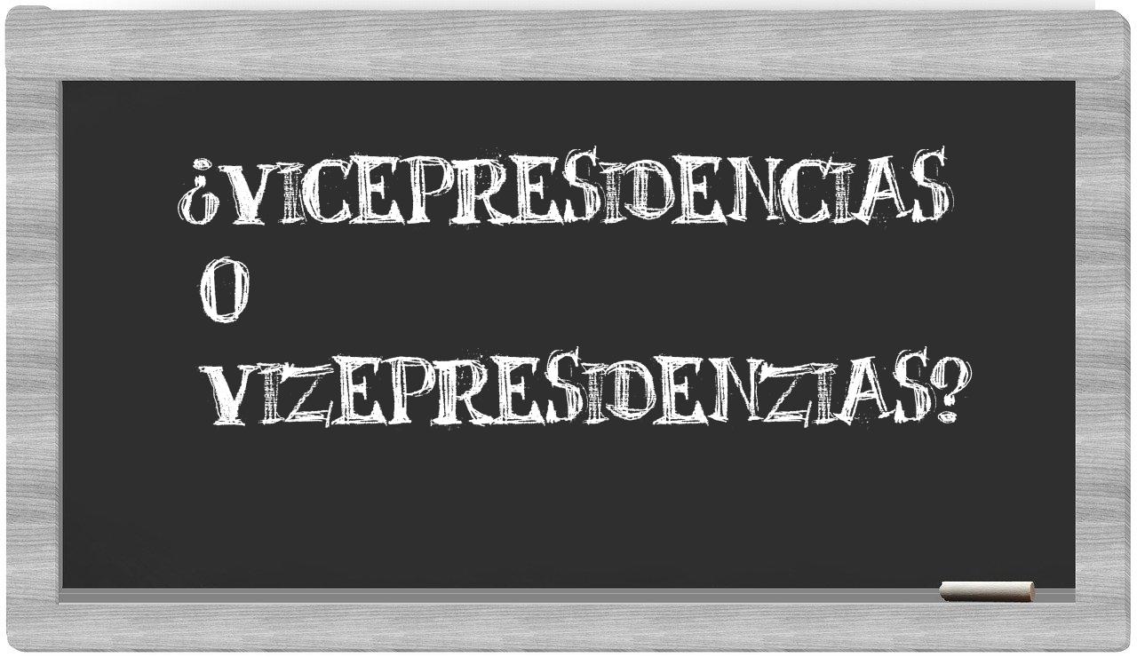 En la situación específica que involucra los términos vicepresidencias y vizepresidenzias, es fundamental que no te muestres indeciso, porque únicamente vicepresidencias está redactado de manera adecuada. Es importante señalar que vizepresidenzias no se encuentra registrado en el Diccionario de la Real Academia Española.