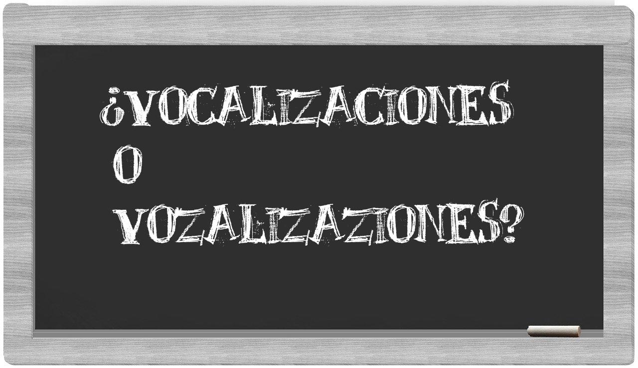 En la situación particular que involucra los términos vocalizaciones y vozalizaziones, no deberías titubear en tu elección, puesto que solo vocalizaciones se encuentra adecuadamente redactada. Por otro lado, vozalizaziones no se halla registrada en el prestigioso Diccionario de la Real Academia Española.