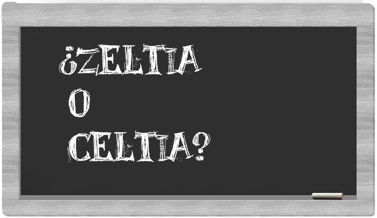 Cuando se presenta la disyuntiva entre zeltia y celtia, la elección es clara y sin titubeos, porque únicamente zeltia es la opción que se encuentra adecuadamente aceptada; celtia, en cambio, no figura en el prestigioso Diccionario de la Real Academia Española.
